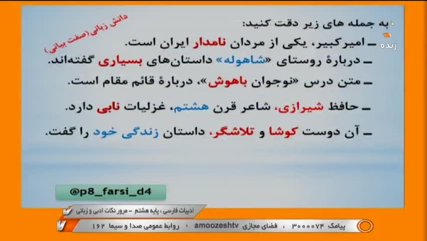 پایه هشتم متوسطه ادبیات فارسی - مرور نکات ادبی و زبانی / ۴ دی ۱۴۰۰ پایه هشتم متوسطه چهار شنبه 8 دی 1400 ادامه...