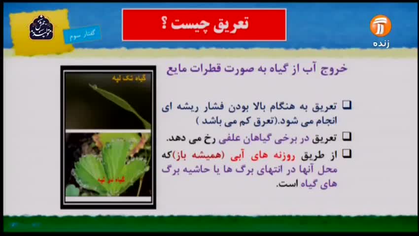 پایه دهم متوسطه(شبکه آموزش) زیست شناسی - آوند آبکش و ساختار گیاهی / 25 فروردین 1401