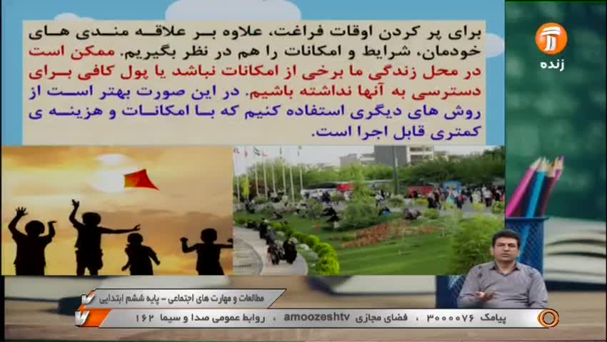 پایه ششم ابتدایی (شبکه آموزش) مطالعات و مهارت های اجتماعی- درس چهاردهم - برنامه ریزی برای اوقات فراغت / ۵ بهمن