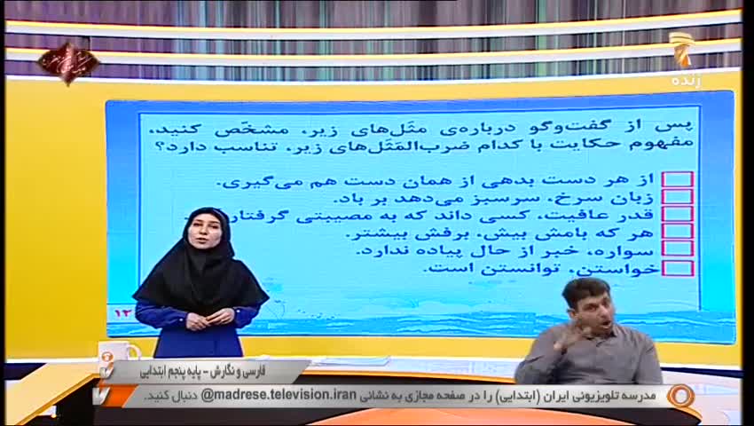پایه پنجم ابتدایی(شبکه آموزش) فارسی و نگارش - درس 13 / 25 بهن 1400