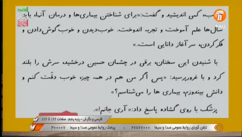 پایه پنجم ابتدایی(شبکه آموزش) فارسی ص 121 تا 125 / 20 فروردین 1401