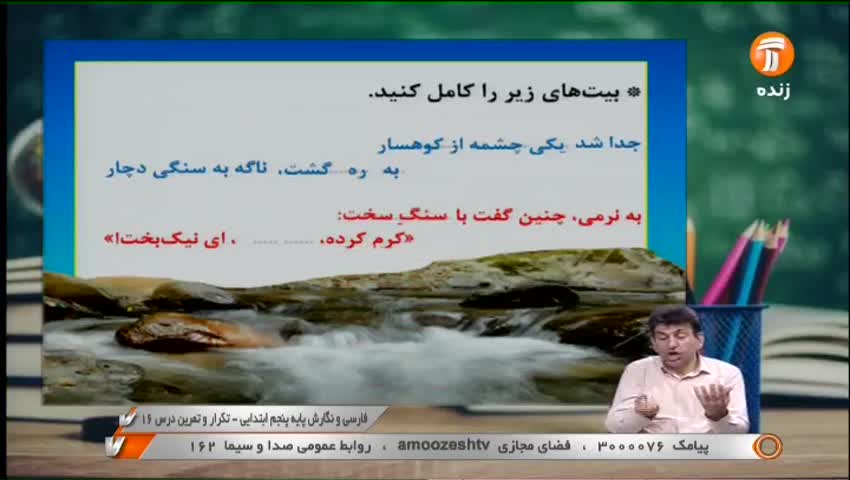 پایه پنجم ابتدایی(شبکه آموزش) فارسی و نگارش - شعر چشمه و سنگ ص168 / 22 فروردین 1401