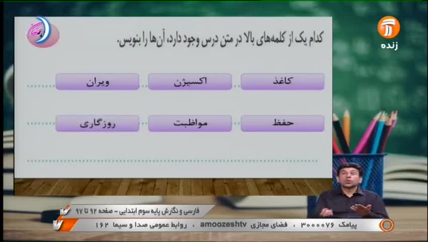 پایه سوم ابتدایی(شبکه آموزش) فارسی و نگارش - صفحه 98 / 25 اسفند 1400