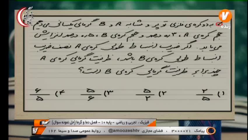 پایه دهم متوسطه(شبکه آموزش) فیزیک - تجربی - تعادل گرمایی / 16 فروردین 1401