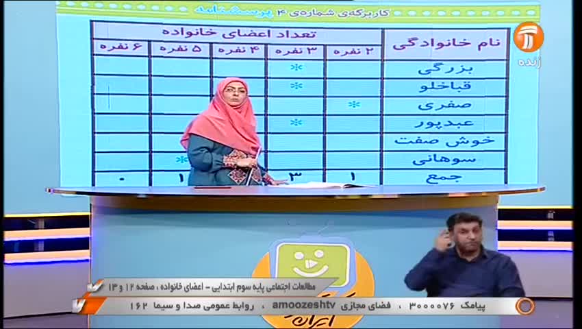 پایه سوم ابتدایی(شبکه آموزش) ریاضی - فصل 7 جدول داده ها - ص 118 و 119 / 16 فروردین 1401