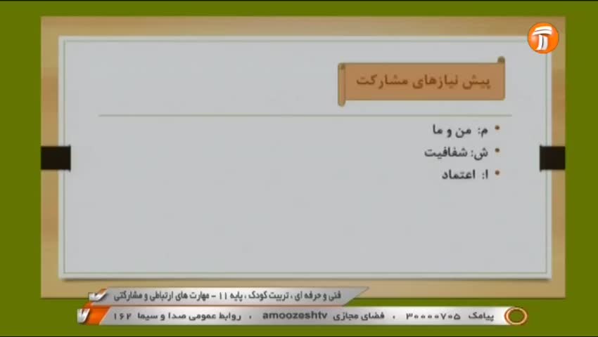 کار دانش و فنی و حرفه ای(شبکه آموزش) تربیت کودک - پایه ۱۱ - مهارتهای ارتباطی و مشارکتی / ۲۶ آبان ۱۴۰۰