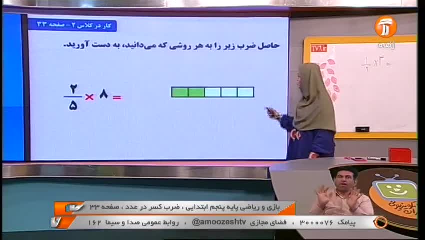 پایه پنجم ابتدایی(شبکه آموزش) 5,227 بازی و ریاضی - ضرب کسر در عدد - صفحه ۳۳ / ۱۰ آذر ۱۴۰۰