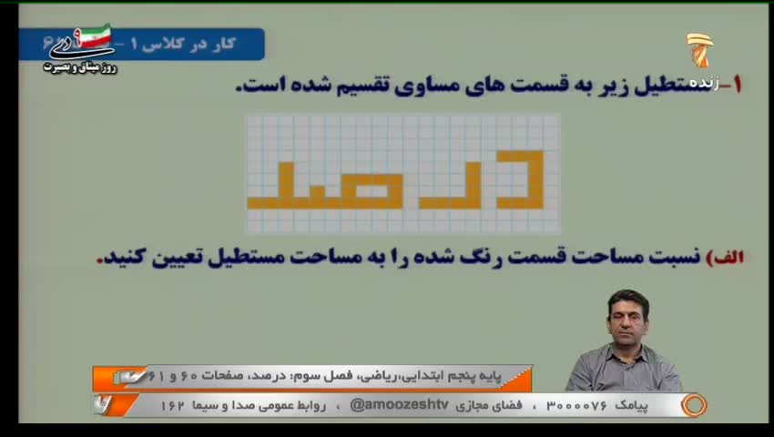پایه پنجم ابتدایی ریاضی - فصل ۳ - درصد - صفحات ۶۰ و ۶۱ / ۹ دی ۱۴۰۰